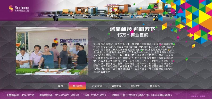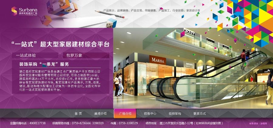 湛江盛邦家居建材廣場是由湛江市盛邦投資有限公司盛邦家居建材市場服務管理分公司投資,項目占地面積170畝,建筑面積高達15萬平方米,總投資達6億元,是目前湛江最大的綜合性家居裝飾建材市場,是集家居建材產品展示、交易、信息、儲運、加工、配送和相關配套設施為一體的專業化、全面化、科學化的一站式家居裝飾建材展銷平臺。