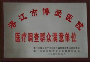 湛江博愛醫院是全國醫保定點單位。醫院位于湛江市麻章區金康東路58號(麻章車站斜對面),交通便利,環境優雅,設施完善,總建筑面積4700余平方米,共設置床位71張。是按照湛江市衛生局批準設立的,集醫療、科研、預防、保健、美容為一體,專注于為人們提供醫療服務的新時代醫院。