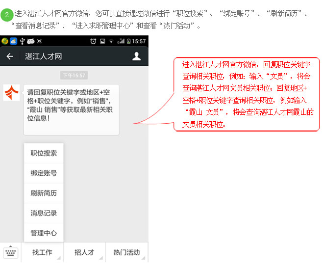 湛江人才網是一個主要面向湛江地區的求職招聘門戶網站,是湛江地區訪問量最高的、開辦時間最早的、本地化優勢最顯著的、獨具品牌個性魅力最強的求職招聘專業網站。隨著移動互聯網的高速發展,微信目前已經成為目前最受歡迎的個人通訊、娛樂、交友等為一體的移動端平臺。為了感謝廣大英才10年來對湛江人才網一直以來的鼎力支持和信賴,湛江人才網現推出微信求職平臺,方便廣大英才在玩轉微信的同時,隨時隨地找工作。找工作就在彈指間,找工作就這么簡單!現在讓我們一起體驗湛江人才網微信求職平臺吧!