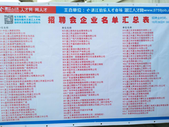 為了給企業和求職者搭建雙向交流信息平臺,10月28日,湛江人才網在湛江圖書館一樓伯樂人才市場舉辦了大型招聘會。