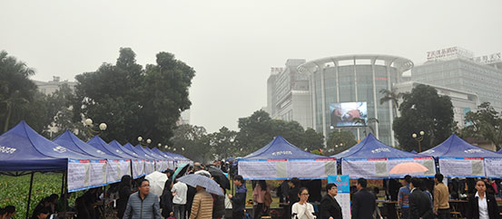 據(jù)湛江人才網(wǎng)統(tǒng)計,當(dāng)天參加招聘會的企業(yè)達(dá)到120多家。招聘會當(dāng)天雖然陣雨不斷,但是仍然阻擋不了求職者尋找工作的熱情。