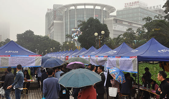 真正想找工作的求職者,不分晴天和雨天。有求職者表示,當(dāng)天是乘坐一個多小時的公交車來到招聘現(xiàn)場;也有求職者是奔著某家企業(yè)而來。求職者的態(tài)度,值得豎大拇指!