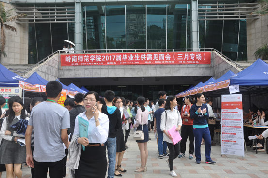 為搭建用人單位選聘人才及畢業生就業平臺,2017年3月31日,由嶺南師范學院主辦,湛江人才網協辦的“2017屆畢業生供需見面會(三月專場)”在嶺南師范學院體育館前隆重舉行。