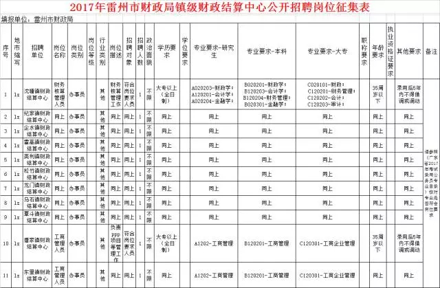 雷州市財政局下屬鎮(zhèn)級財政結算中心專項公開招聘崗位征集表.xls
