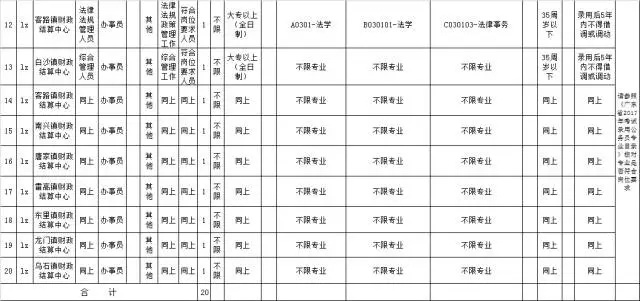 本次招聘崗位為雷州市財政局下屬17個鎮(zhèn)級財政結算中心管理崗位的工作人員,財政核撥事業(yè)編制,共計20名,其中財務核算管理人員9名,工商管理人員2名,法律法規(guī)管理人員1名,綜合管理人員8名。(詳見附表1)。