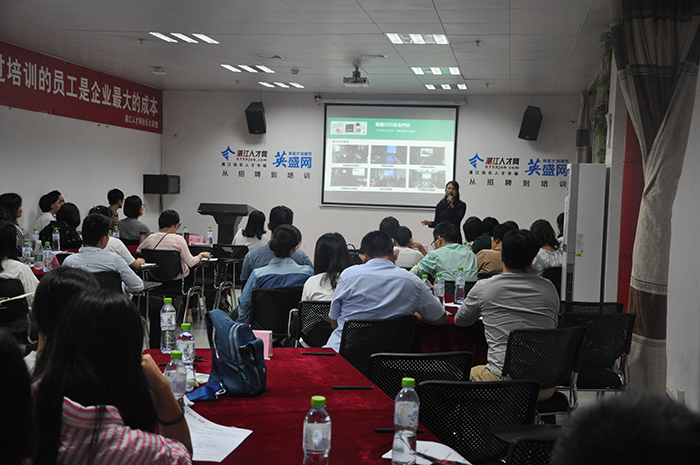 交流會伊始,主持人公布本次交流會的流程,然后湛江人才網(wǎng)梁藤耀總經(jīng)理分享了企業(yè)從招聘到培訓(xùn)的發(fā)展過程,并介紹英盛網(wǎng)的在線培訓(xùn)系統(tǒng)。