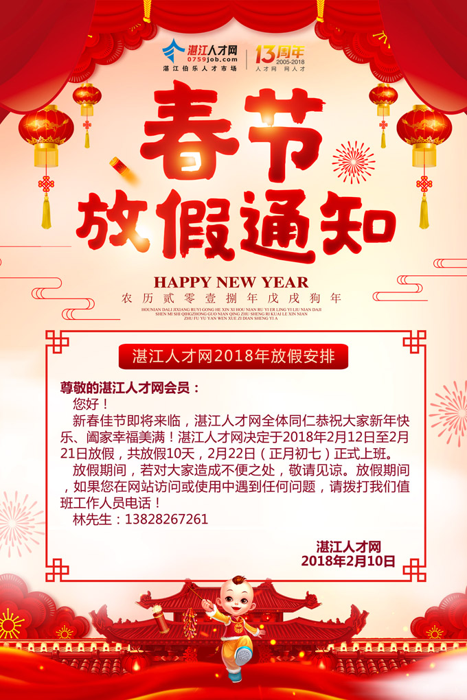時間:2018-02-09 15:51:00 作者:湛江人才網 來源:湛江人才網
