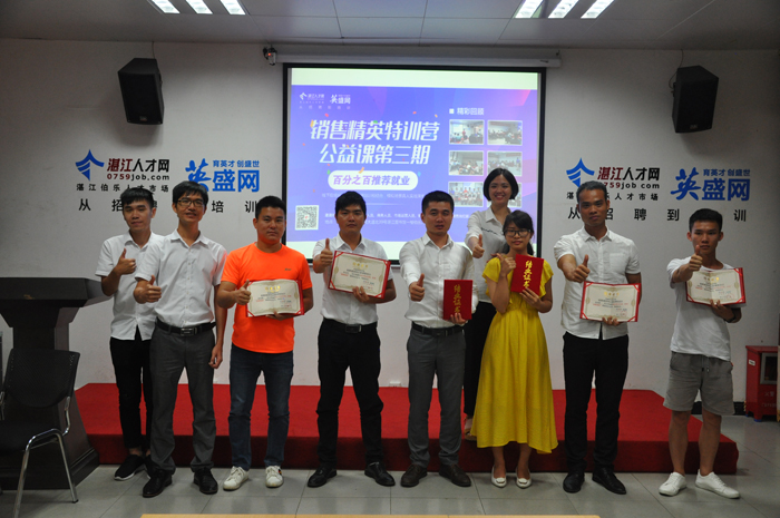 2018年6月11日-6月13日,湛江人才網&英盛網聯合舉辦公益培訓-銷售精英特訓營第三期,在湛江伯樂人才市場成功舉辦,學員順利畢業!