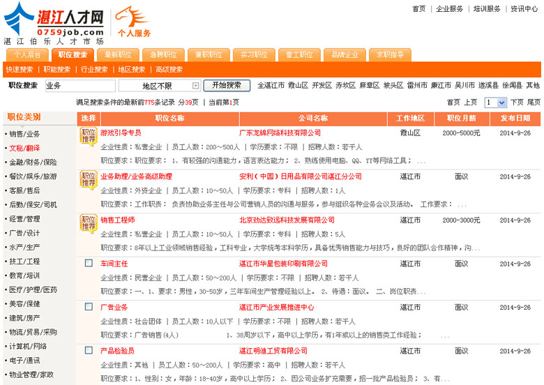 地址:湛江市赤坎區體育北路6號君臨世紀廣場5號樓2層02號商鋪  郵編:524000  郵箱:0759@0759job.com  中文網址:湛江人才網.com