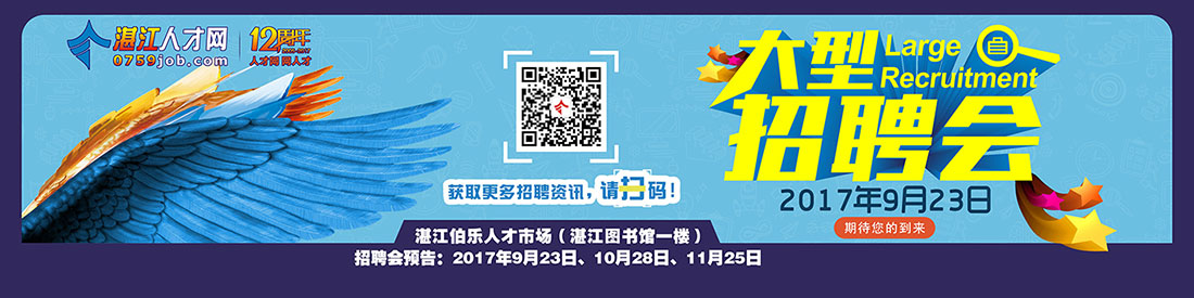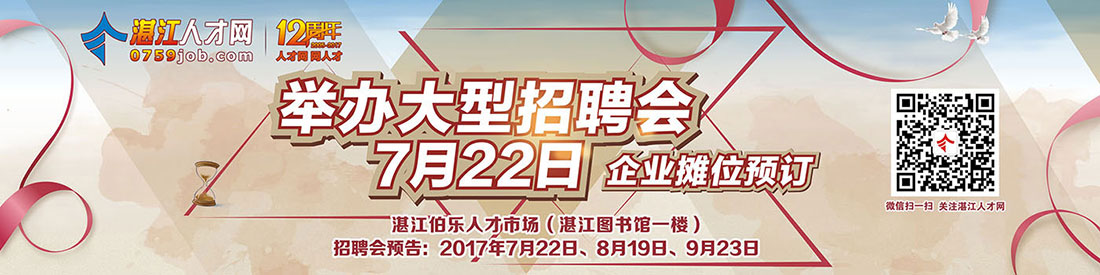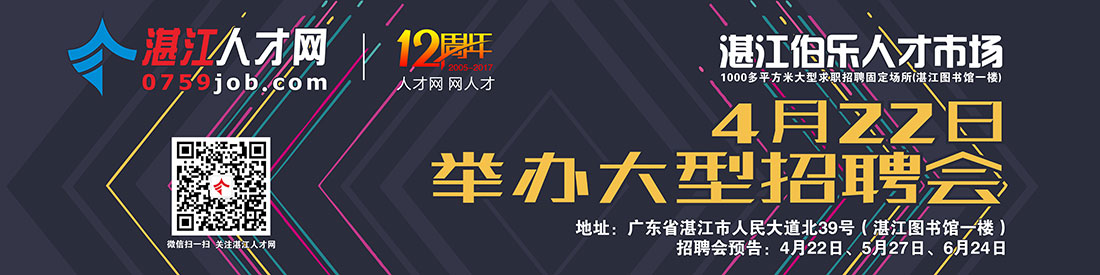 地址:湛江市赤坎區(qū)體育北路6號(hào)君臨世紀(jì)廣場(chǎng)5號(hào)樓2層02號(hào)商鋪 郵編:524000 郵箱:0759@0759job.com 中文網(wǎng)址:湛江人才網(wǎng).com