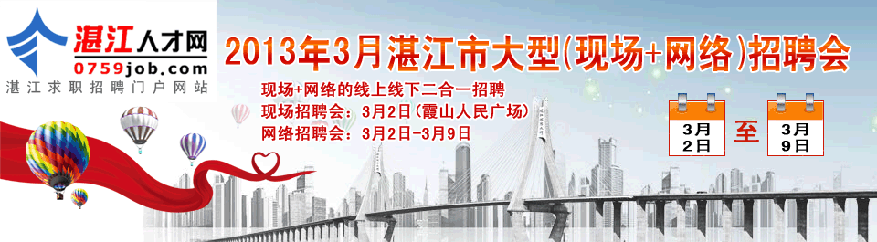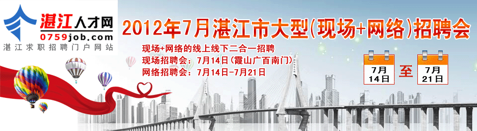 地址:湛江市赤坎區體育北路6號君臨世紀廣場5號樓2層02號商鋪 郵編:524000 郵箱:0759@0759job.com 中文網址:湛江人才網.com